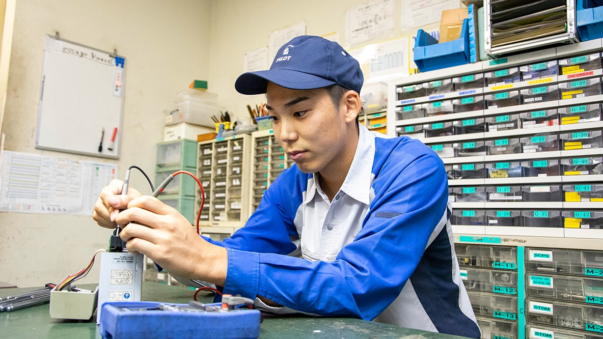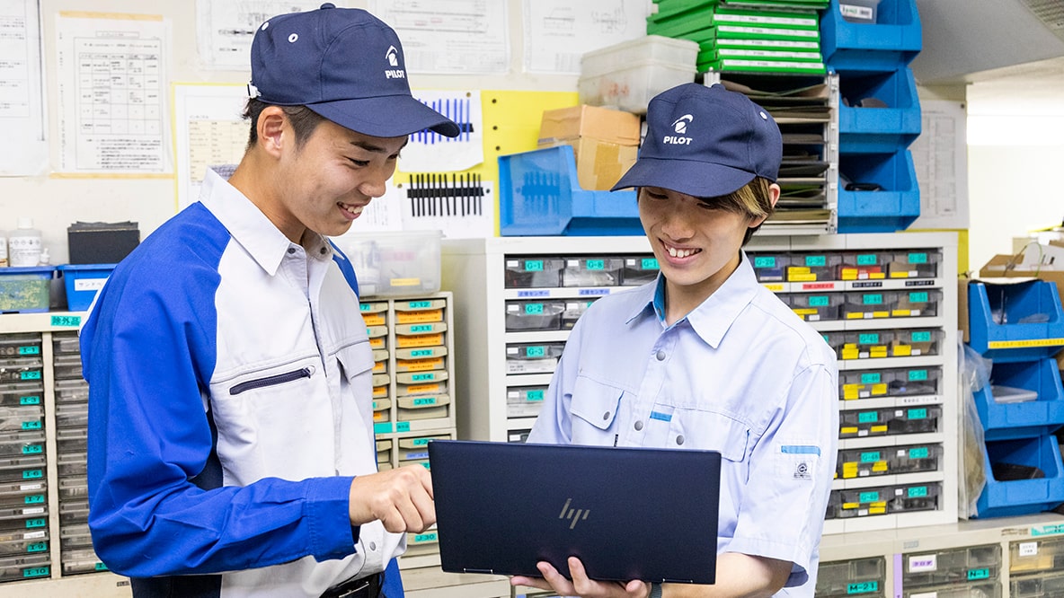 本配属後は各職場で、必要なことを1つ1つ覚えていきます。こちらは生産技術職の井口先輩。