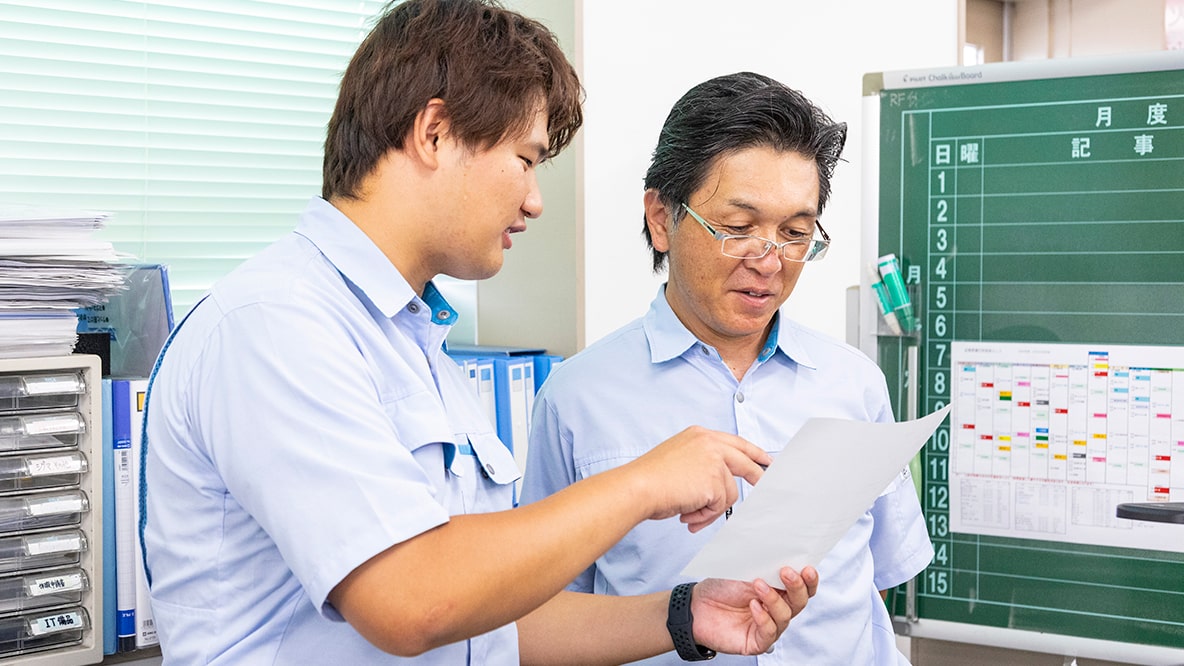 刀根先輩は、津工場の生産管理業務を担当しています。刀根先輩の仕事についても、先輩メッセージで詳しく紹介していますよ。