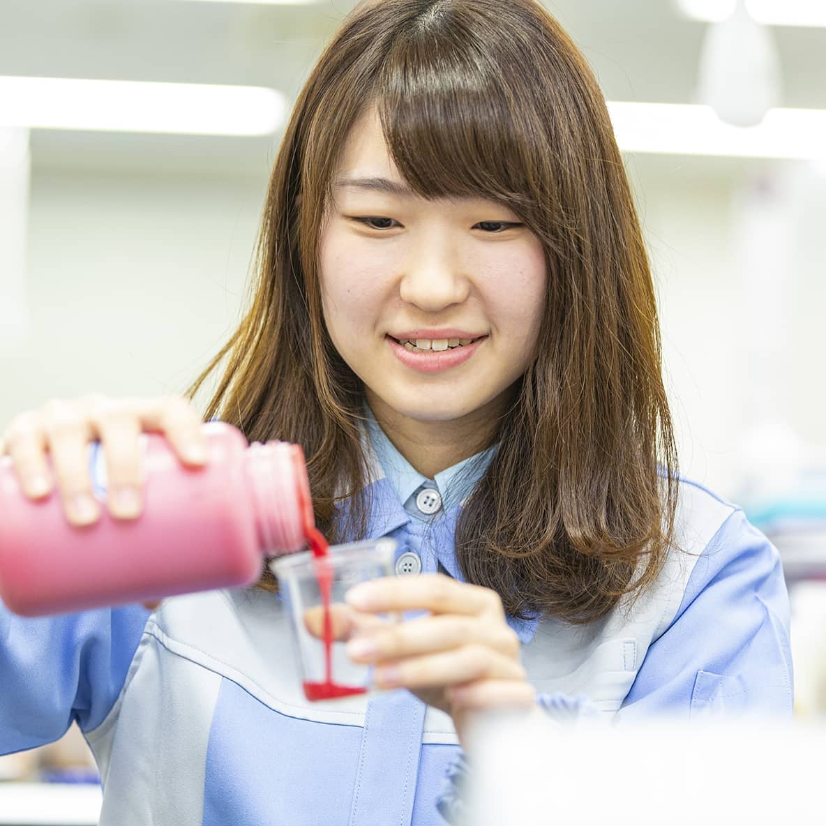 - 「いきなりで大丈夫かな…?」という戸惑いもありましたが、自分で作ったサンプルの色が実際に変化する様子を見られたことはとても新鮮で面白く感じました。それに、検査の過程では当社のコア技術に触れることができるので、かなり勉強になりました。